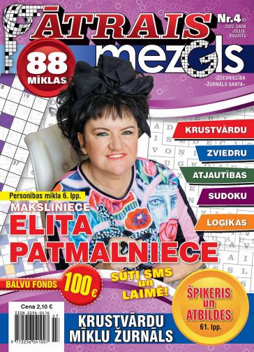 ĀTRAIS MEZGLS. Žurnāls mīklu cienītājiem ar ātri atrisināmiem viegliem uzdevumiem – zviedru mīklām, krustvārdu mīklām, skaitļu mīklām, kā arī loģikas un atjautības uzdevumiem. Žurnāla pievienotā vērtībā – mīklās izmantoto vārdu špikeris un atbildes. Sms mīklu balvās – 100 eiro katrā numurā.