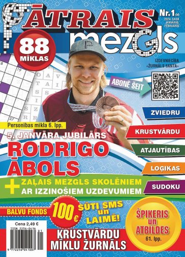ĀTRAIS MEZGLS. Žurnāls mīklu cienītājiem ar ātri atrisināmiem viegliem uzdevumiem – zviedru mīklām, krustvārdu mīklām, skaitļu mīklām, kā arī loģikas un atjautības uzdevumiem. Žurnāla pievienotā vērtībā – mīklās izmantoto vārdu špikeris un atbildes. Sms mīklu balvās – 100 eiro katrā numurā.