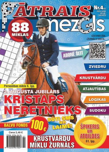 ĀTRAIS MEZGLS. Žurnāls mīklu cienītājiem ar ātri atrisināmiem viegliem uzdevumiem – zviedru mīklām, krustvārdu mīklām, skaitļu mīklām, kā arī loģikas un atjautības uzdevumiem. Žurnāla pievienotā vērtībā – mīklās izmantoto vārdu špikeris un atbildes. Sms mīklu balvās – 100 eiro katrā numurā.