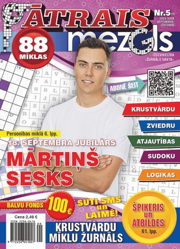 ĀTRAIS MEZGLS. Žurnāls mīklu cienītājiem ar ātri atrisināmiem viegliem uzdevumiem – zviedru mīklām, krustvārdu mīklām, skaitļu mīklām, kā arī loģikas un atjautības uzdevumiem. Žurnāla pievienotā vērtībā – mīklās izmantoto vārdu špikeris un atbildes. Sms mīklu balvās – 100 eiro katrā numurā.