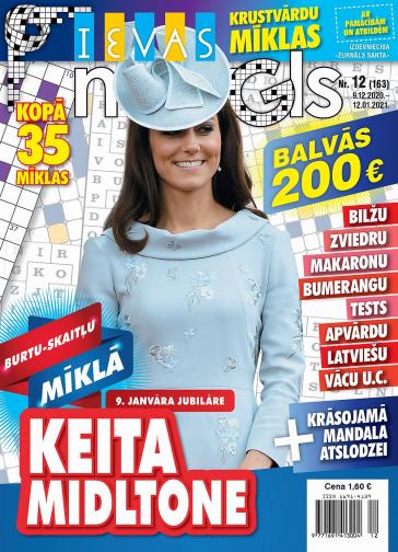 - Par vāka gaviļnieci Kembridžas hercogieni Katrīnu jeb Keitu Midltoni piedāvāta burtu-skaitļu mīkla, loģikas mīļotājus priecēs saistvārdu mīkla par latviešu aktrisēm un erudīcijas tests par decembra jubilāriem, Jetes Ziemassvētku mīkla, bet prāta atslodzei noderēs krāsojamā mandala un japāņu mīkla ar pamācībām, savukārt bērniem – puzle.