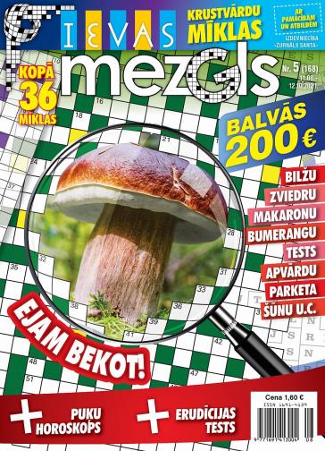 IEVAS MEZGLS. Mazformāta žurnāls ar vieglām mīklām intelektuālai izklaidei: zviedru mīklas, klasiskās, rēbusi, makaronu, japāņu, burtu-skaitļu, asociāciju, šifrētās, parketa, krustskaitļu, sudoku... Balvās 200 eiro katru mēnesi.