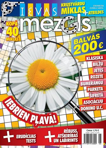 IEVAS MEZGLS. Mazformāta žurnāls ar vieglām mīklām intelektuālai izklaidei: zviedru mīklas, klasiskās, rēbusi, makaronu, japāņu, burtu-skaitļu, asociāciju, šifrētās, parketa, krustskaitļu, sudoku... Balvās 200 eiro katru mēnesi.