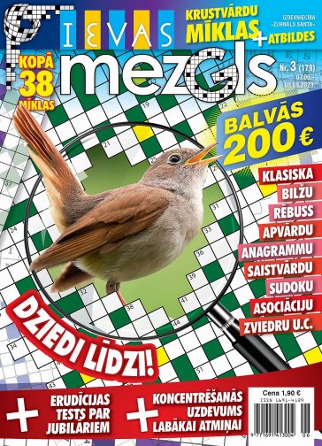 IEVAS MEZGLS. Mazformāta žurnāls ar vieglām mīklām intelektuālai izklaidei: zviedru mīklas, klasiskās, rēbusi, makaronu, japāņu, burtu-skaitļu, asociāciju, šifrētās, parketa, krustskaitļu, sudoku... Balvās 200 eiro katru mēnesi.