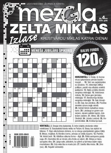MEZGLA ZELTA MĪKLAS. Ikmēneša klasisko krustvārdu mīklu izdevums ar mīklām katrai mēneša dienai. Pievienotā vērtība – dienas kalendārā informācija, fakti, joki. Balvu fonds 120 eiro.