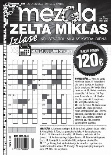 MEZGLA ZELTA MĪKLAS. Ikmēneša klasisko krustvārdu mīklu izdevums ar mīklām katrai mēneša dienai. Pievienotā vērtība – dienas kalendārā informācija, fakti, joki. Balvu fonds 120 eiro.