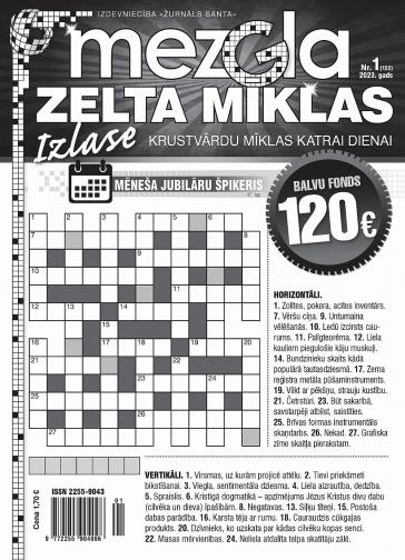 MEZGLA ZELTA MĪKLAS. Ikmēneša klasisko krustvārdu mīklu izdevums ar mīklām katrai mēneša dienai. Pievienotā vērtība – dienas kalendārā informācija, fakti, joki. Balvu fonds 120 eiro.