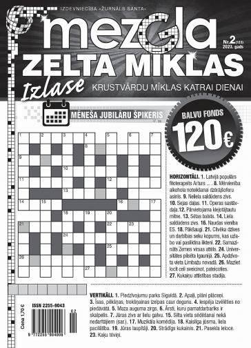 MEZGLA ZELTA MĪKLAS. Ikmēneša klasisko krustvārdu mīklu izdevums ar mīklām katrai mēneša dienai. Pievienotā vērtība – dienas kalendārā informācija, fakti, joki. Balvu fonds 120 eiro.
