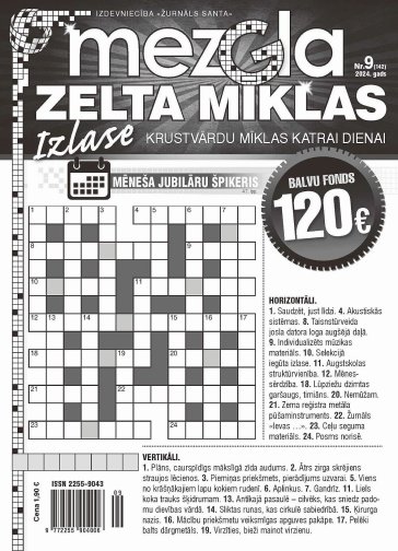 MEZGLA ZELTA MĪKLAS. Ikmēneša klasisko krustvārdu mīklu izdevums ar mīklām katrai mēneša dienai. Pievienotā vērtība – dienas kalendārā informācija, fakti, joki. Balvu fonds 120 eiro.