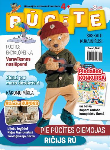 - Pie Pūcītes ciemojas lācēns Ričijs Rū, kuru kopā ar dziedātāju Lauri Reiniku viņu var sastapt arī muzikāli izglītojošos raidījumos, bet žurnālā viņi tev ir sagatavojuši interesantus uzdevumus un aicina piedalīties zīmējumu konkursā.