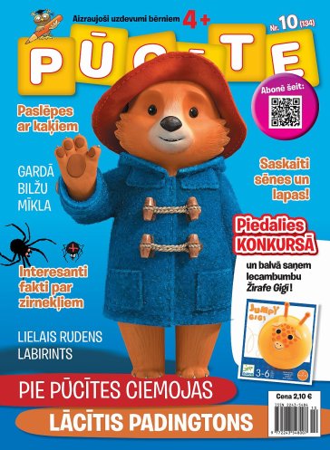 - Jaunajā Pūcītes numurā ciemos ieradies lācītis Padingtons, kurš ir tik mīlīgs un jauks, taču arvien iekuļas kādās nepatikšanās. Viņš tev ir sagatavojis vairākus uzdevumus un aicina piedalīties arī zīmējumu konkursā.