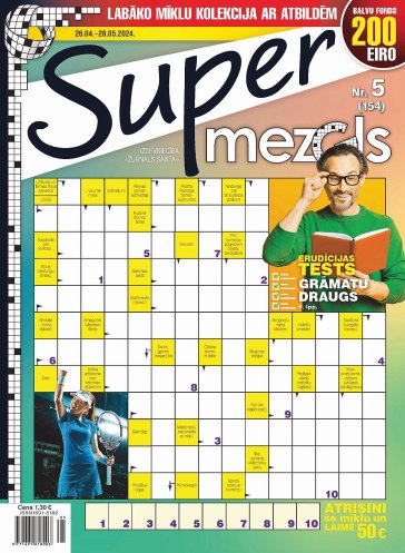 SUPERMEZGLS. Labāko mīklu kolekcija. Pievienotā vērtība – lielās rūtis – mīkla tiem, kam vājāka redze. Balvās – 200 eiro katru mēnesi.
