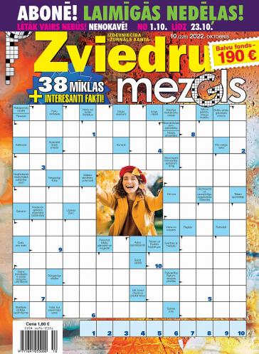 - Oktobra numura lielās, diagonālās, bezgalīgās un citas zviedru mīklas papildina mēneša notikumu mīkla, interesanti fakti, erudīcijas tests par interesantākajām spēlēm rudens vakariem, saistvārdu, apļu, parketa, sudoku, vācu, horvātu, šūnu, astoņburtu, tukšā, latviešu, šifrētā, skaitļu, atšķirību mīklas.