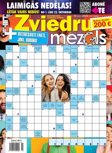 - Oktobra numura lielās, diagonālās, bezgalīgās un citas zviedru mīklas papildina mēneša notikumu mīkla, jubilāru, saistvārdu, apļu, parketa, sudoku, vācu, horvātu, šūnu asociāciju, astoņburtu, tukšā, latviešu, šifrētā, skaitļu, sinonīmu mīklas. Erudīcijas testā pievēršamies rudenim. Atceramies, ka laiks abonēt žurnālu nākamajam gadam – LAIMĪGO NEDĒĻU periodā cenas ir visizdevīgākās!